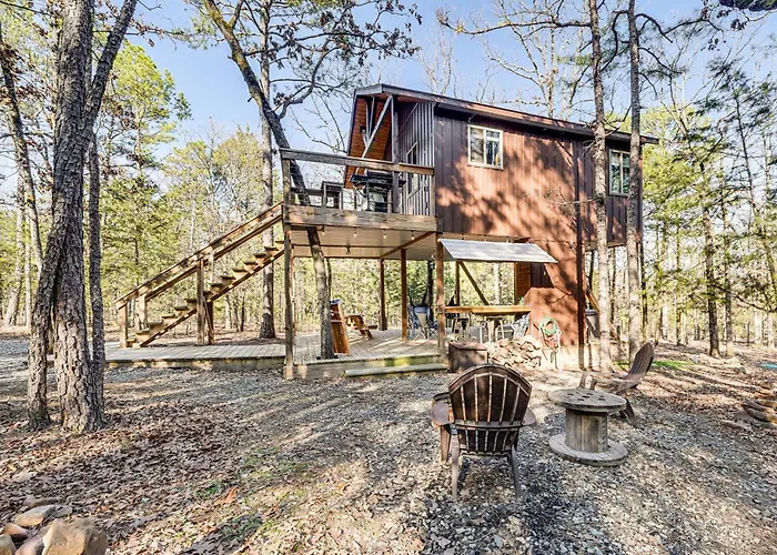 Bluebird Treehouse Near Kiamichi Mtns With Hot Tub Apartment is equipped with a kitchen, complete with an oven and a dishwasher.